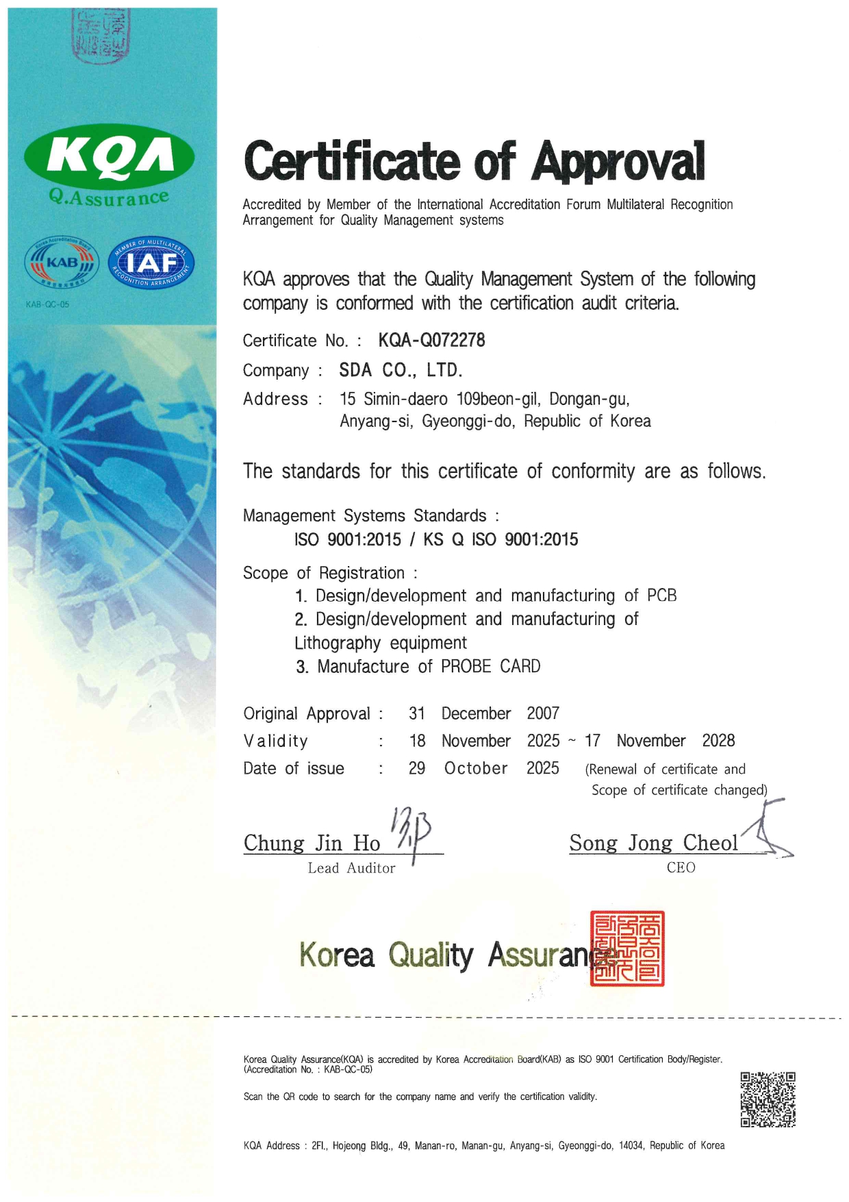 Certification of ISO 9001