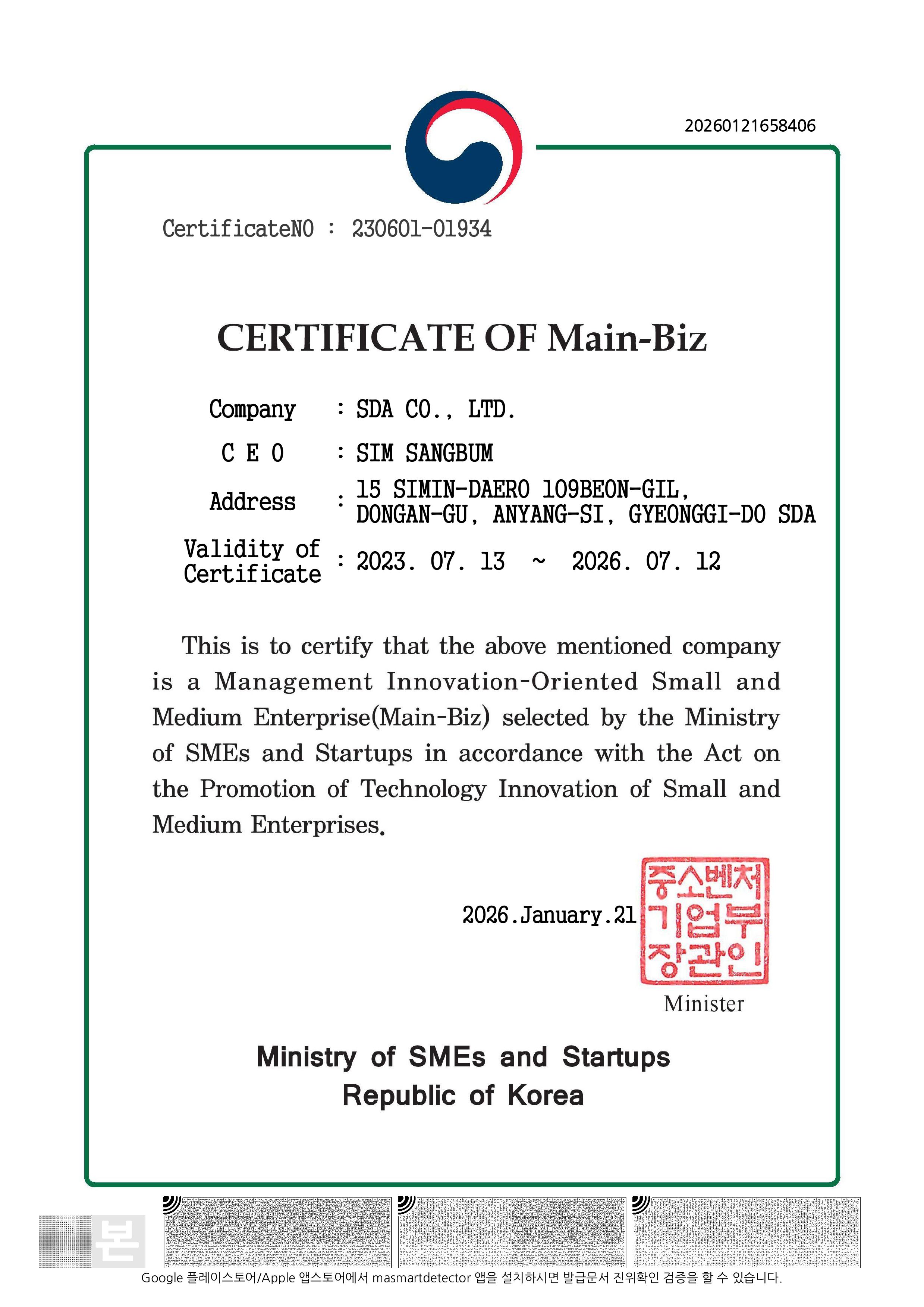 Certificate of Main-Biz